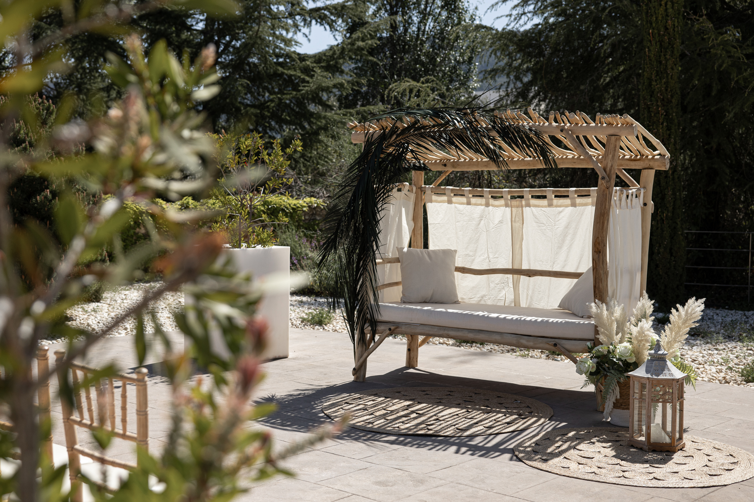 Lugar perfecto para la recepción de invitados antes de la ceremonia y para un refrigerio a la llegada con vistas a los jardines de la finca. También se puede celebrar la ceremonia o cóctel.