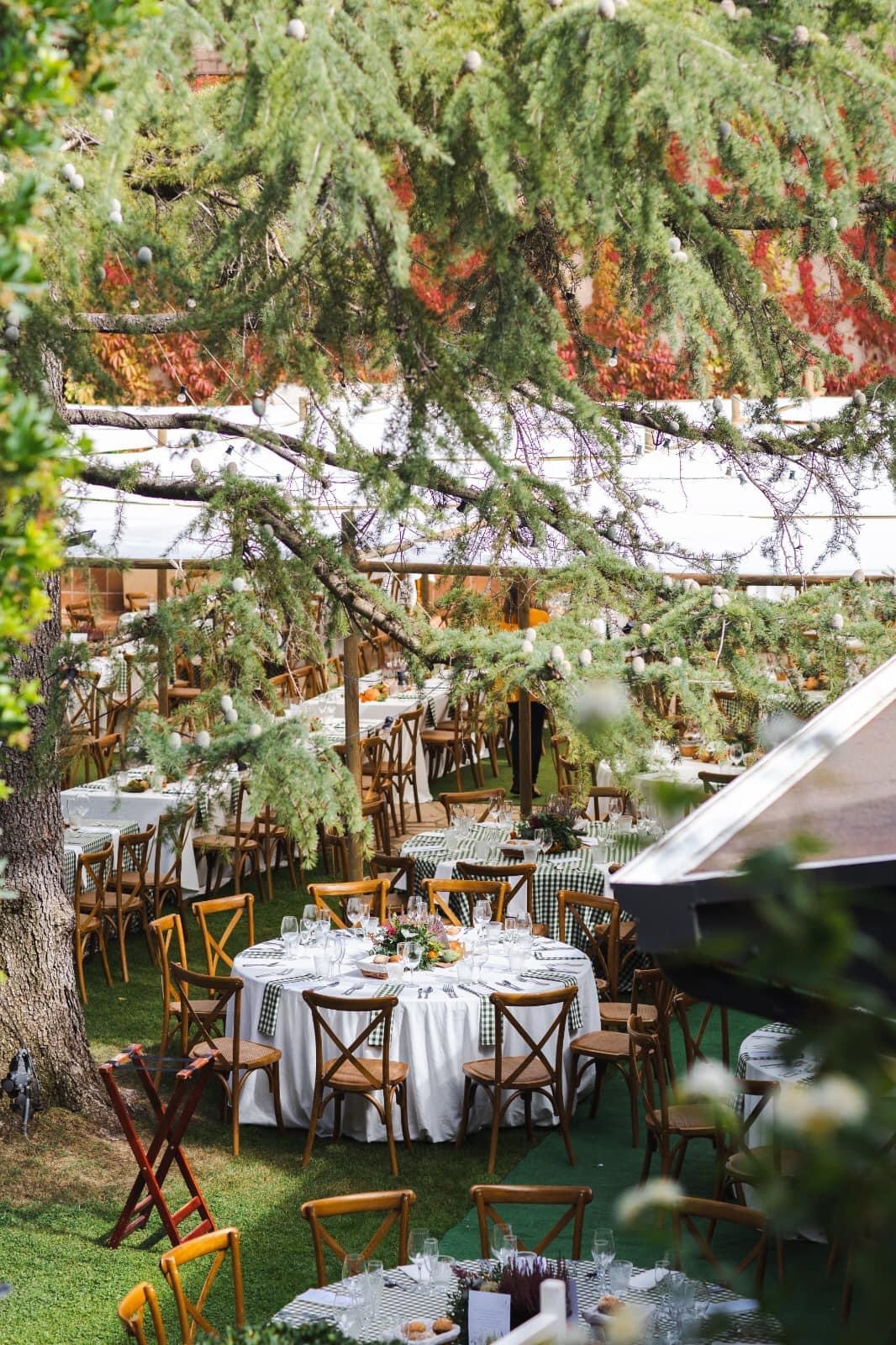 Espacio ideal donde poder realizar la ceremonia, banquete hasta 250 personas o el cóctel de hasta 350 invitados. Un espacio diferente y acogedor donde poder disfrutar de la brisa de lo árboles con sombra natural.